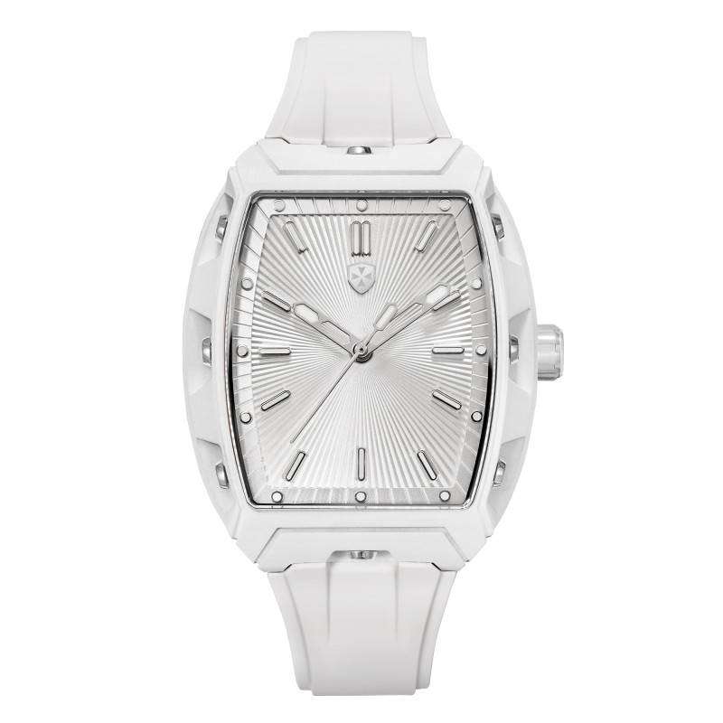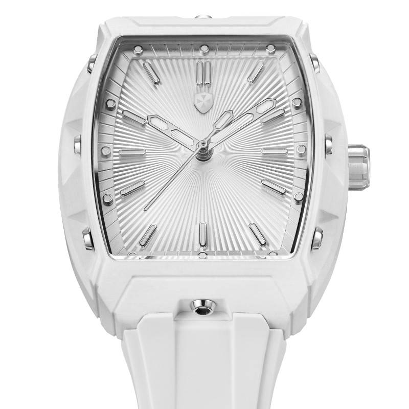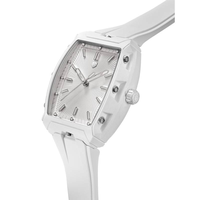 Le bracelet en caoutchouc blanc de cette magnifique montre a été spécialement conçu pour offrir un confort exceptionnel tout en complétant parfaitement l'élégance du boîtier. Enveloppant délicatement le poignet, ce bracelet assure un maintien optimal grâce à son fermoir boucle ardillon, qui garantit une fermeture sécurisée. L'association de la matière souple du caoutchouc avec la robustesse du boîtier en carbone confère à cette montre une incroyable polyvalence qui ravira les femmes modernes cherchant à allier élégance et confort au quotidien.