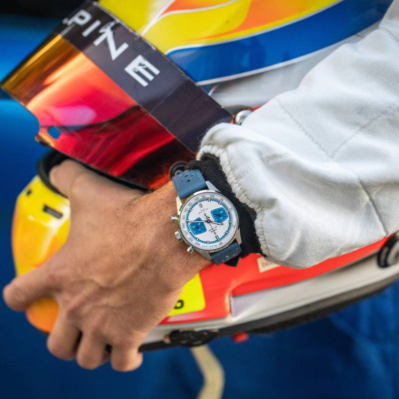 La montre Yema x Alpine Cup Series Manuel présente une réalisation sophistiquée, alliant modernité et tradition. Le boîtier est conçu en acier inoxydable, une matière reconnue pour sa durabilité et sa résistance à la corrosion. Avec un diamètre de 41 mm et une épaisseur de 12,50 mm, cette montre se pose comme une pièce audacieuse mais élégante sur le poignet. Le verre bombé en saphir, résistant aux rayures, est un gage d'élégance et de protection, sublimant chaque angle de vue. L'utilisation d'une couronne vissée renforce l'aspect fonctionnel et l'étanchéité de 10 ATM, rendant ce garde-temps parfait pour les aventures quotidiennes comme pour les occasions spéciales. Le texturé est accentué par une finition polie brillante qui attire l'œil et souligne le savoir-faire artisanal de Yema. Cette montre est une édition limitée à seulement 100 exemplaires.