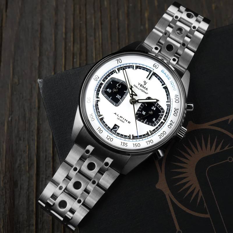 La montre Yema x Alpine Cup Series Meca-Quartz YMHF1589ALP-BM célèbre l'engagement de Yema en tant que nouveau chronométreur officiel du championnat automobile Alpine Elf Cup Series. Cette édition spéciale est un formidable hommage aux valeurs de précision et d'excellence chères à l'univers de la compétition automobile française et à l'Alpine A110. Avec un boîtier rond en acier inoxydable 316L, cette montre se distingue par ses dimensions harmonieuses de 39,00 mm de diamètre et 10,20 mm d'épaisseur, conférant à la fois robustesse et confort. La finition est soigneusement travaillée, alternant entre les surfaces brossées et polies, capturant habilement les reflets de la lumière. Le verre minéral bombé ajoute une touche de sophistication tout en assurant une protection fiable contre les aléas du quotidien.