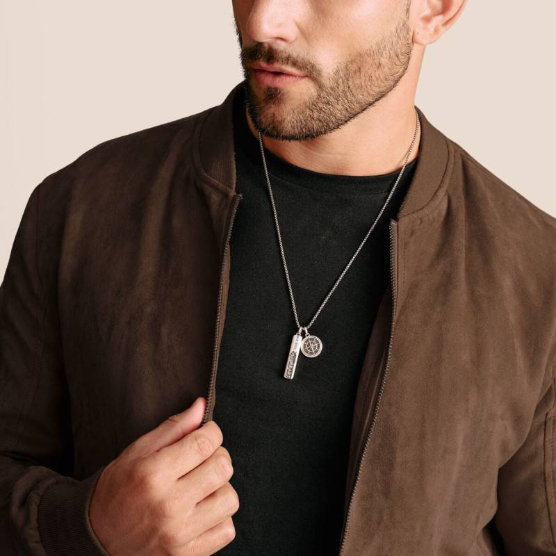 Découvrez le Pendentif Boussole Rebel Icons en Argent 925/1000, un éclat métallique d'une audace inégalée. Ce bijou, orné de pierres d'oxyde de zirconium aux teintes sombres, est une ode à l'aventure intérieure et aux horizons lointains. Avec une largeur de 17 mm et une hauteur de 25 mm, chaque détail de son design témoigne d'un savoir-faire exceptionnel, capturant la lumière et l'imaginaire à travers son allure polie et brillante. Le fermoir boucle assure une tenue raffinée, tandis que la garantie de 2 ans offre une assurance de qualité à celui qui le porte.