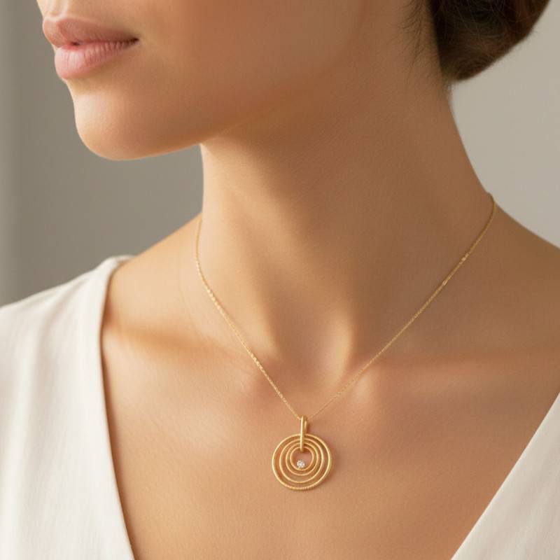 Laissez-vous envoûter par le Pendentif Cercles Texturés en Or Jaune 375 & Diamant, une symphonie de formes et de lumière. Cet attribut précieux, destiné à la femme, resplendit d'une couleur jaune captivante, forgé dans l'or jaune de qualité 375/1000 (9K). Ce bijou, d'une élégance intemporelle, est orné d'un diamant pur, d'une étincelante couleur blanche, pesant en tout 0,05 ct. Avec un diamètre de 20,00 mm et une hauteur de 25,00 mm, ce pendentif léger comme l'air ne pèse que 1,60 g. Une garantie de deux ans accompagne cette pièce unique, symbole de votre élégance.
