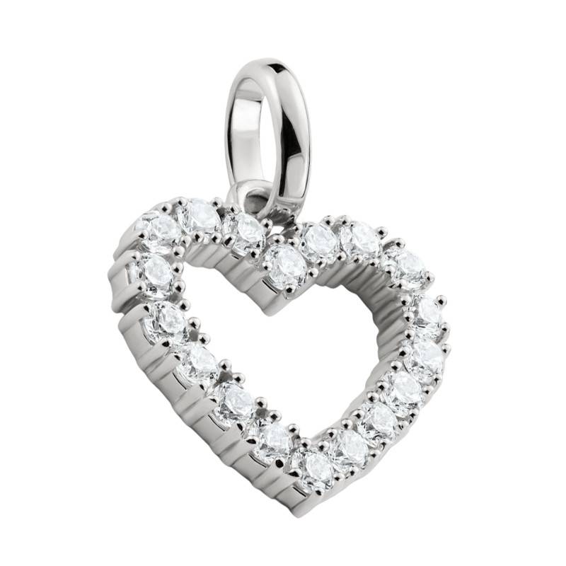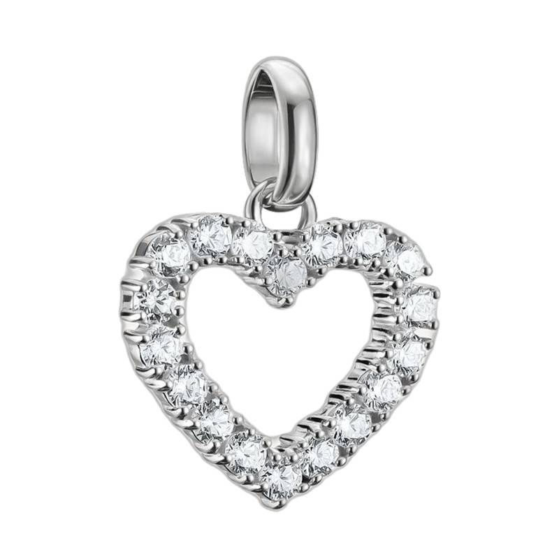 Découvrez ce Pendentif Charm Coeur en Argent 925 Recyclé & Pierres Blanches, une merveille de délicatesse et de raffinement. En son centre, l'argent massif 925/1000 s'épanouit dans une brillance miroitante, poli avec soin pour captiver chaque éclat de lumière. Sa silhouette de 15 mm de largeur et de 20 mm de hauteur est rehaussée par un sertissage subtil d'oxydes de zirconium blancs, dans un serti à grains qui évoque la lumière douce et la tendresse éternelle. D'une légèreté palpable, avec un poids total de 1,60 g, ce charm promet de rehausser avec élégance toute occasion.