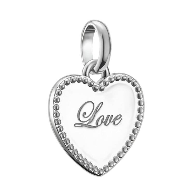 Ce Pendentif Charm Coeur Love en Argent 925 Recyclé est une ode à la délicatesse féminine. Sa surface, avec une finition mate, démontre une élégance discrète, rehaussée par des détails perlés qui en bordent les contours. Le mot "Love", gravé en son centre, évoque un sentiment éternel et universel. Ce bijou, aux dimensions de 14 mm de largeur et 19 mm de hauteur, a une présence subtile mais inoubliable. Avec un poids léger de 1,80 g, il se porte comme un doux secret contre le cœur.