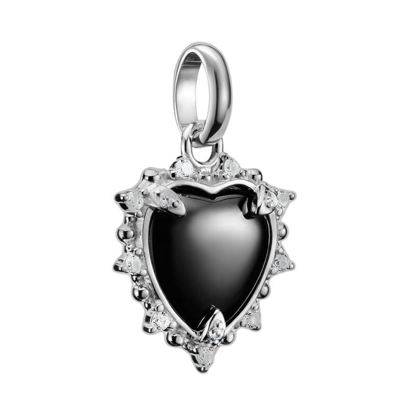 Sublimez votre collection avec le Pendentif Charm Coeur Vintage en Argent 925 Recyclé & Pierres Noires. Ce pendentif pour femme incarne la délicatesse et la passion, avec sa teinte audacieusement grise rehaussée par l'argent massif 925/1000. Sa surface polie et brillante reflète merveilleusement la lumière, tandis que les oxydes de zirconium étincelants en noir et blanc, sertis à griffes, ajoutent une touche de mystère et de glamour. Ce trésor fait 13,50 mm de largeur pour 20 mm de hauteur, et pèse élégamment 2,60 g.