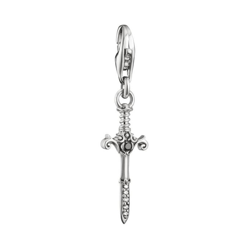 Découvrez le Pendentif Charm Épée True Romance Original en Argent et Oxydes de Zirconium, une pièce qui incarne la force et la délicatesse dans un subtil mélange. Ce bijou, destiné à une clientèle féminine, arbore une élégante couleur noir. Fabriqué en argent massif 925/1000, il reflète une brillance polie et éclatante. Sa largeur de 8 mm et sa hauteur de 30 mm en font un accessoire raffiné. Le fermoir mousqueton garantit sécurité et confort, tandis que les pierres d'oxyde de zirconium blanches et noires ajoutent une touche scintillante à cette création.