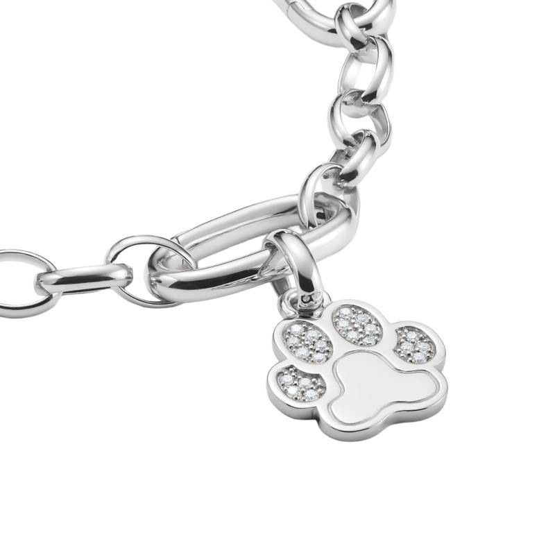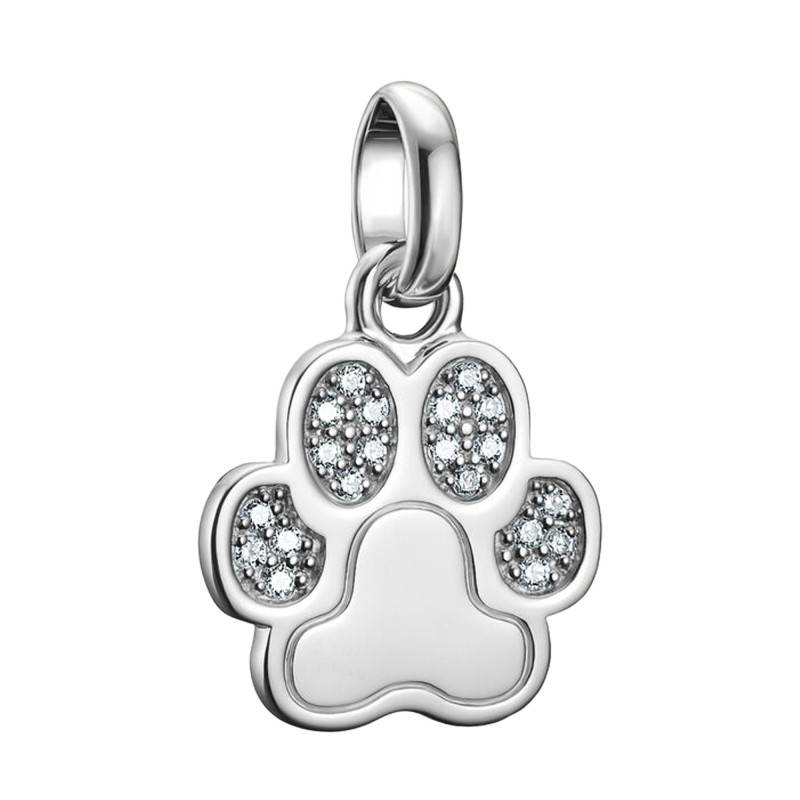 Découvrez le merveilleux Pendentif Charm Patte de Chien en Argent 925 Recyclé & Pierres Blanches, un hommage raffiné à la fidélité et à l'amour inconditionnels. Façonné en argent massif 925/1000, ce bijou arbore une finition mate qui rehausse son éclat sobre. Orné de 20 pierres d'oxyde de zirconium blanc serties à grains, il scintille discrètement à chaque mouvement. Avec ses dimensions élégantes de 13 mm de largeur et 20 mm de hauteur, il pèse un léger 1,80 g, se posant avec grâce sur la peau.