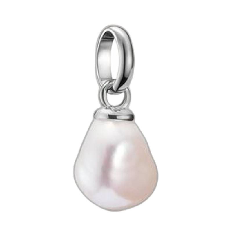 Ce Pendentif Charm Perle d'Eau Douce et Argent 925 Recyclé scintille avec grâce et beauté. La perle de culture, berceau de lumières nacrées, danse délicatement avec la monture en argent massif 925/1000. Son éclat polie et brillante, rehausse la couleur gris argenté du bijou, reliant élégamment une perle blanche pure à l'univers de la haute joaillerie. Avec une hauteur de 19 mm et une largeur de 9 mm, sa légèreté de 1,30 g assure un porté confortable, tout en offrant une touche de sophistication à votre tenue.