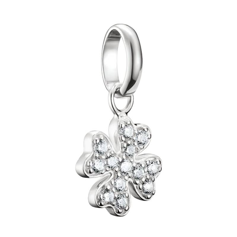 Ce pendentif charm captivant, en argent 925 recyclé, est façonné en forme de trèfle à quatre feuilles, symbole de chance et d'espoir. La lumière joue subtilement sur sa finition mate, révélant des reflets doucement argentés. Orné de délicats oxydes de zirconium blancs, chaque pierre est sublimée par un serti à grains, conférant au bijou une brillance irrésistible. L'ouvrage, d'une largeur de 9 mm et d'une hauteur de 16,5 mm, danse gracieusement à chaque mouvement, pesant avec légèreté seulement 1,30 g. Un trésor à offrir ou à s'offrir, protégé par une garantie de 2 ans.