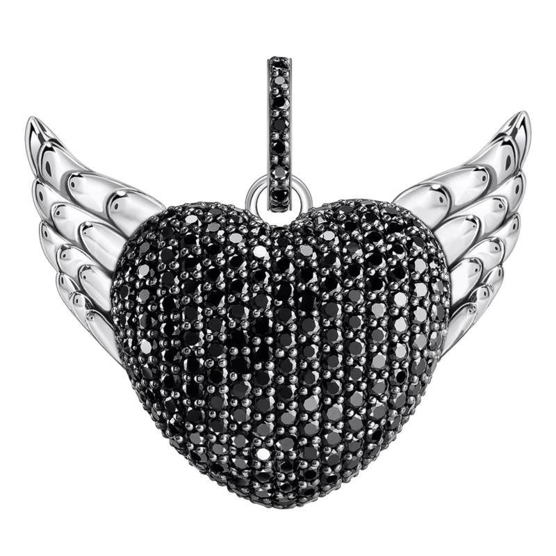Ce Pendentif Coeur Ailé en argent massif 925/1000 est une célébration de la féminité audacieuse. Les ailes effleurant le cœur évoquent des envolées rêveuses, tandis que les pierres noires en oxyde de zirconium, serties avec minutie, illuminent ce bijou d'un éclat envoûtant. D'une largeur de 34 mm et d'une hauteur de 30 mm, la finition polie et brillante de cet écrin de douceur se décline dans des nuances de nuit étoilée. Avec son fermoir en boucle, il promet une stabilité infaillible, et dispose d'une garantie de 2 ans.