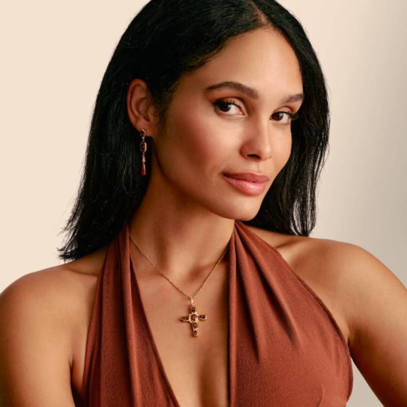 Ce pendentif Croix Elyndra est une merveille en Argent 925 délicatement plaqué Or Jaune 750. Les oxydes de zirconium rouges grenat, réhaussés par 4 oxydes de zirconium blancs captivent les regards par leur éclat ensorcelant. Le pendentif arbore une largeur de 30,00 mm et une hauteur de 47,00 mm, s'accrochant délicatement grâce à une boucle élégante. Sa finition polie et brillante reflète les lumières environnantes, sublimant chaque instant.