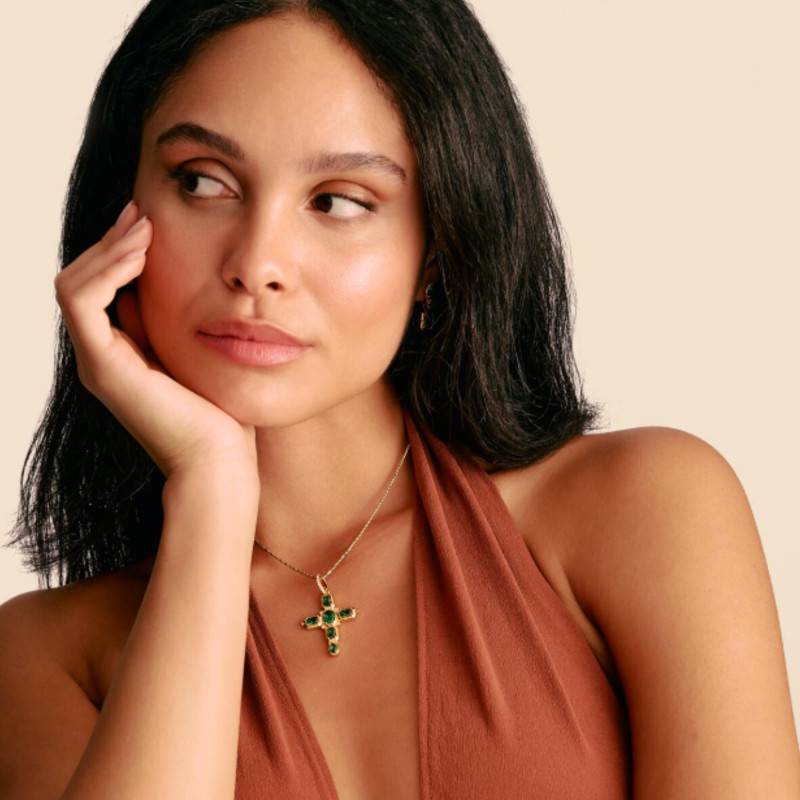 Laissez-vous envoûter par le Pendentif Croix Elyndra, une œuvre d'art en Argent 925 recouvert de Plaqué Or Jaune 750. Ce bijou éclatant s'orne de pierres blanches et vertes envoûtantes : dix gemmes précieuses et délicates, en vitro-céramique et oxyde de zirconium. Avec une largeur de 30 mm et une hauteur de 47 mm, cette croix est un hommage à la lumière et à la beauté. Sa finition polie et brillante ajoute une touche d'élégance intemporelle. Enfin, son fermoir à boucle assure un port gracieux et sécurisé.