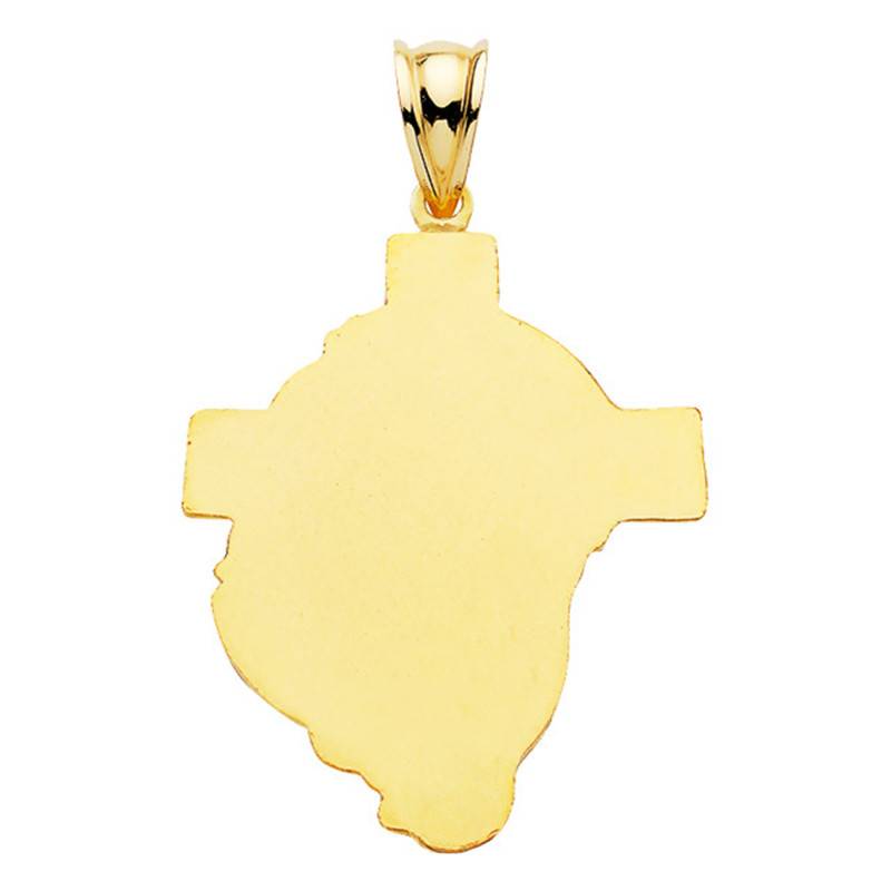 Classique et éclatant, ce pendentif en or jaune 375/1000 (9K) apportera une touche d'élégance à votre look. L'or du bijou est très travaillé, en effet les détails sont en relief et oscillent entre forme lisses et rainurées. Le portrait du Christ ainsi que ses yeux sont penchés vers le bas. Sa chevelure ondulée est surmontée de la célèbre couronne d'épines. Le visage est accompagné de la croix religieuse qui symbolise l'amour des chrétiens par excellence. Notez que ce pendentif mesure 31 mm de hauteur et 21 mm de largeur, avec une bélière de 9 mm x 4,5 mm. Son poids d'or théorique de 3,45 grammes.