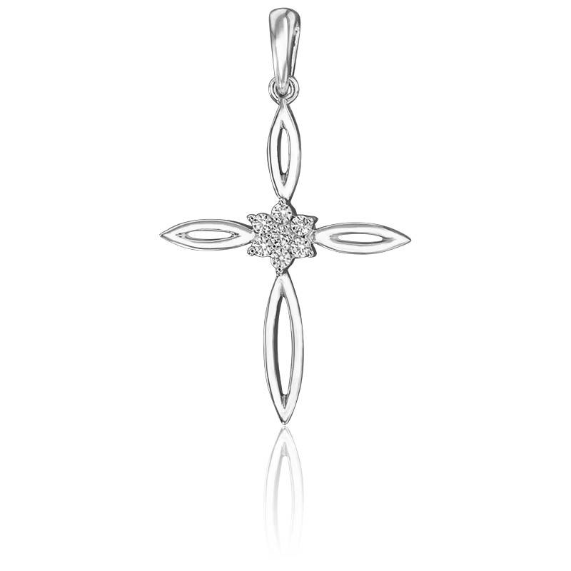 Septs diamants taille "brillant" et de qualité HSI sont sertis à grains au centre de la croix, de manière à former une jolie fleur.