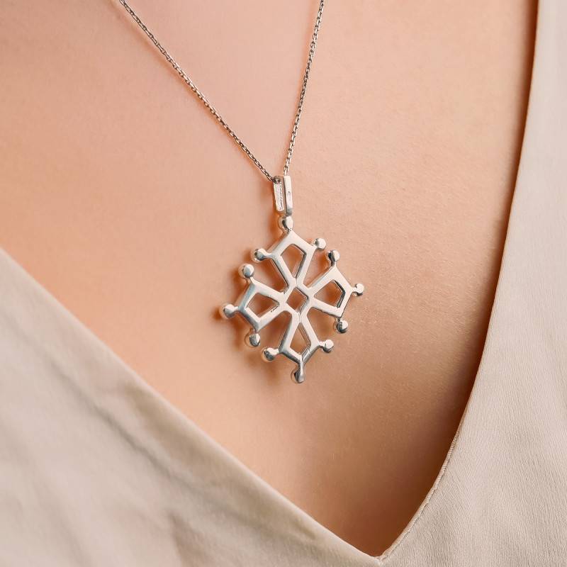 Fabuleuse croix Occitane en argent massif 925/1000.