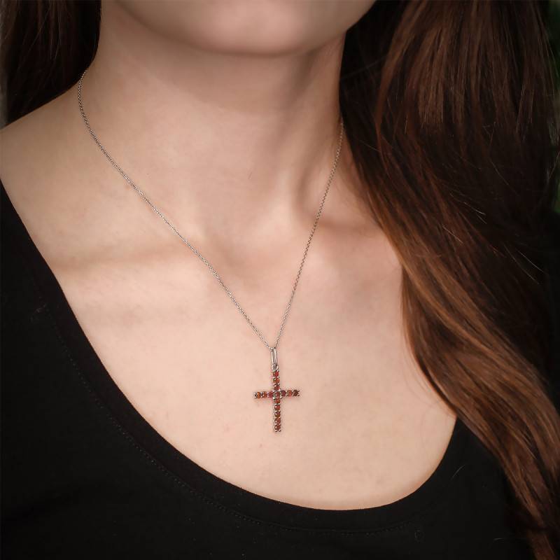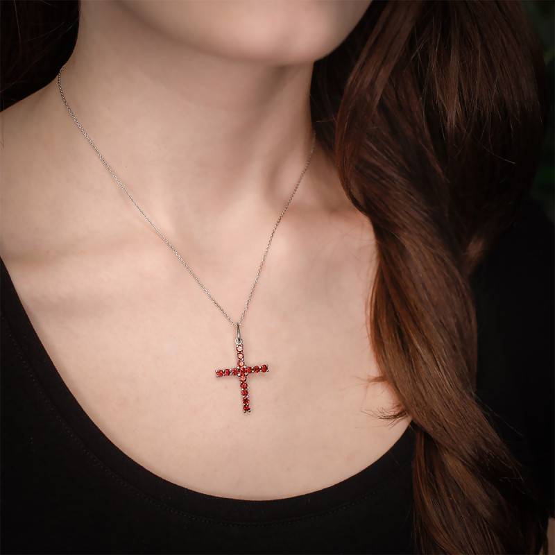 Ce superbe pendentif est fait entièrement en or blanc 375/1000 (9K). On va trouver serti de délicates pierres de grenat qui vont apporter un contraste de couleur avec l'or blanc. Ces grenats rouges sont sertis à griffes pour plus de sécurité. Ce somptueux pendentif sera parfait à offrir pour l'un de vos proches pour une occasion. Concernant ses dimensions, le pendentif mesure 12 mm de largeur et 16 mm de hauteur, avec une épaisseur de 1,50 mm. Le pendentif présente 10 pierres de 1,50 mm et 1 pierre au centre de 2 mm. Ce bijou pèse environ 0,85 gramme.