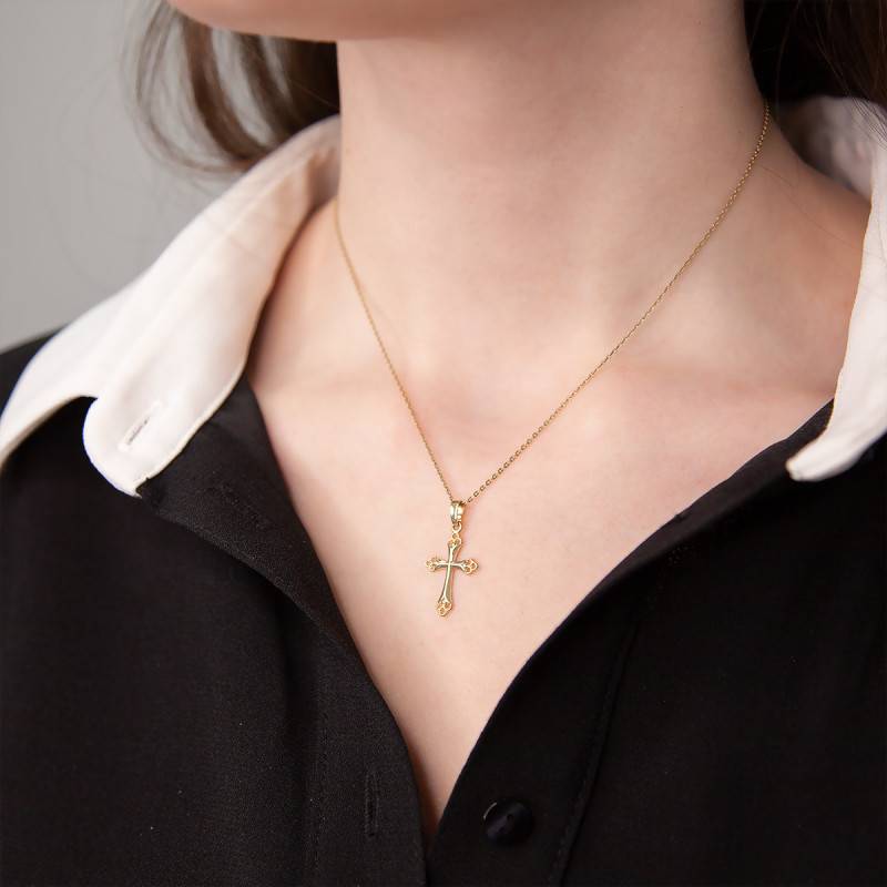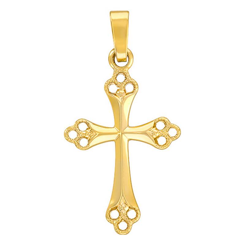 Ici, Vandona et Ocarat vous proposent de découvrir ce superbe modèle de croix orthodoxe en or jaune 375/1000 (9K). En effet, ce modèle est particulier puisqu'il arbore des bords fantaisie qui pourraient donner un effet trèfle.