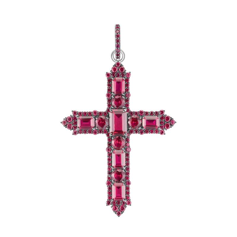 Découvrez l'enchantement du Pendentif Croix Rouge en Argent 925 & Pierres Rouges, une pièce d'exception taillée pour celles qui souhaitent incarner l'alliance de la tradition et de la réinvention. Ce pendentif resplendit grâce à l'argent massif 925/1000, offrant une finition polie et brillante qui capture la lumière avec grâce. Les rubis de synthèse cultivé en laboratoire, sertis avec soin en serti à grains et serti à griffes, exhalent une couleur rouge intense, évoquant passion et profondeur. Cette croix, de 45 mm de hauteur et 27 mm de largeur, s'impose comme un bijou envoutant.