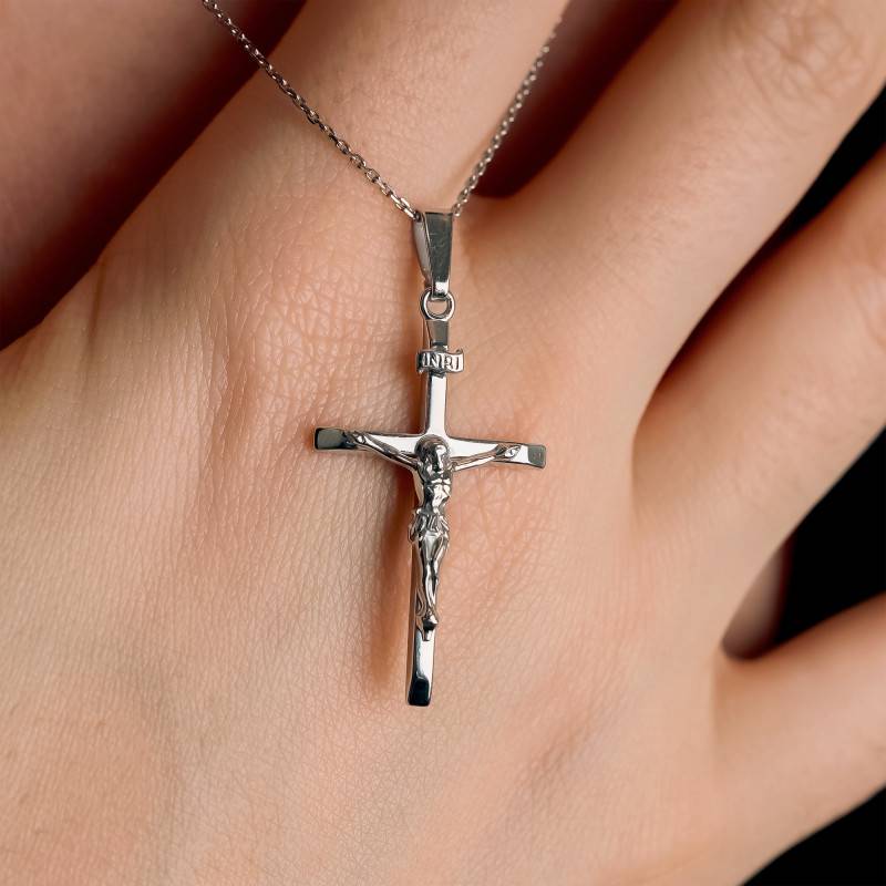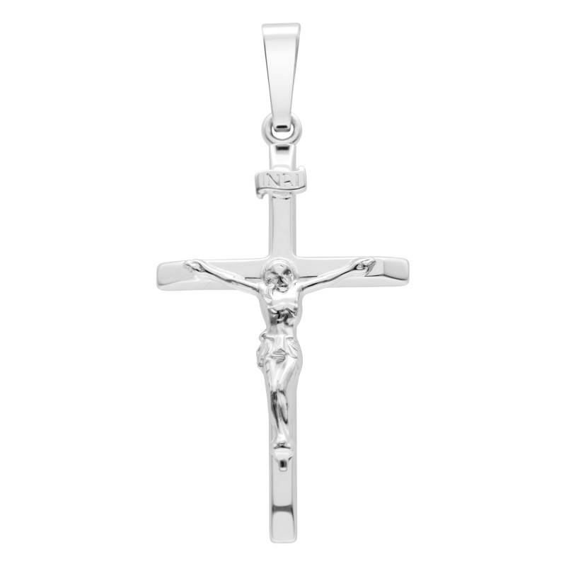 Symbole fort du monde chrétien, ce pendentif est une ravissante représentation du Christ crucifié. Cette croix est réalisée en argent 925 rhodié et arbore une finition polie qui vous fera briller en tout événement. Soigneusement détaillé, ce bijou est complété par les lettres I.N.R.I. qui sont les initiales des mots latins Iesus Nazarenus Rex Iudaeorum que Pilate avait fait mettre sur la Croix, signifiant : Jésus le Nazaréen roi des Juifs. Doté d'une bélière, ce pendentif affiche un poids d'argent moyen de 2,18 grammes.