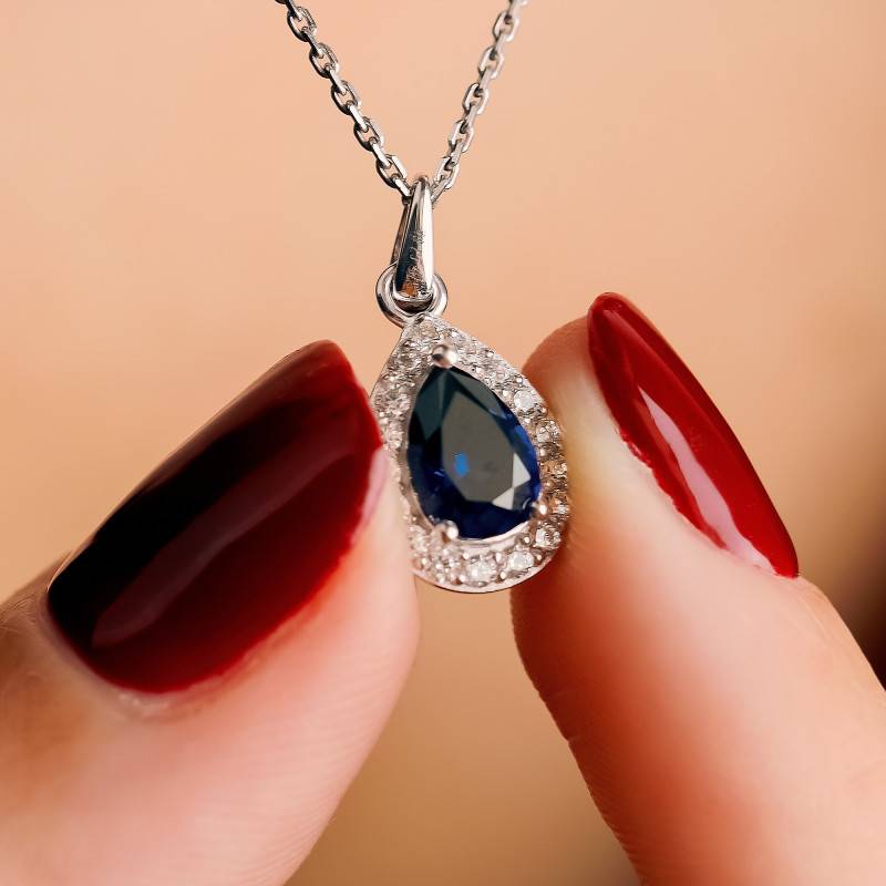 Plongez dans l'éclat envoûtant de ce Pendentif Goutte en Or Blanc 375. Avec son sublime Saphir de Synthèse aux nuances de bleu profond, magnifiquement entouré d'un halo d'Oxydes de Zirconium Blancs, ce bijou marie l'éclat à la sophistication. La matière noble, l'or 375/1000 (9K), offre une finition polie d'une brillance inoubliable. Avec une largeur de 8,10 mm et une hauteur de 18 mm, son poids léger de 0,91 g souligne sa délicatesse. Un serti à griffes assure la sécurité et la mise en valeur des pierres précieuses.