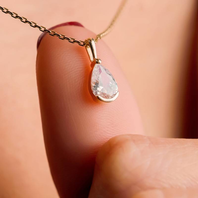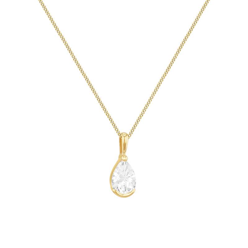 Découvrez le Pendentif Goutte en Or Jaune 375 & Zircone Blanche, une merveille de délicatesse. Sa pierre de zircone blanche, d'une pureté éclatante, est sertie à griffes dans un écrin d'or jaune 375/1000 (9K) resplendissant. La largeur de 4,80 mm et la hauteur de 13 mm viennent sublimer chaque mouvement, tandis que son poids léger de 0,53 g confère une sensation aérienne.