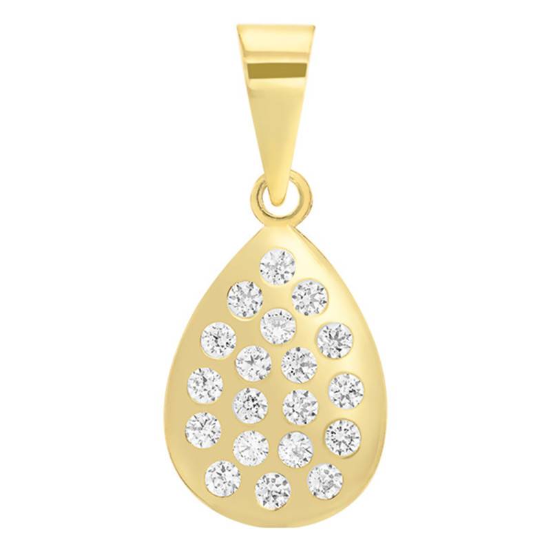 Resplendissez avec ce très beau pendentif en forme de goutte, composé d'or 375/1000 (9K) ou 750/1000 (18K) de la maison Vandona. Au centre du bijou, figure de petites pierres en zircon qui amènent des éclats de brillance. Le mariage des deux matériaux apporte un jeu de reflets saisissants et le graphisme du bijou le rend moderne, il saura accompagner avec élégance chacune de vos tenues. A votre cou, ce pendentif rayonnera avec force ! Grâce à une large bélière, vous pouvez porter cette superbe médaille avec la chaîne de votre choix.