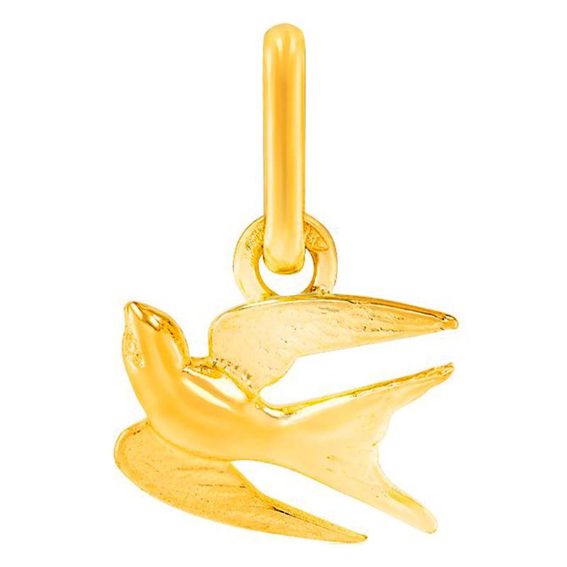 Ce délicat pendentif a été conçu en or jaune 375/1000 (9K). D'une largeur de 11 mm et d'une hauteur de 8 mm, ce pendentif est accompagné d'une bélière ovale ce qui vous permets de glisser la chaîne de votre choix. Cadeau idéal pour un baptême ou une naissance, cette hirondelle affiche un poids moyen en 375/1000 (9K) de 0,50 grammes et en 750/1000 (18K) de 1.65 gramme.