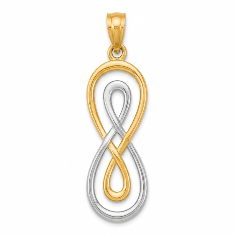 À la recherche d'un bijou singulier et élégant ? Découvrez ce pendentif ajouré composé d'or jaune et blanc 750/1000 (18K) qui se dévoile sous un magnifique design infini entrelacé. Graphique et chic, il illuminera votre port de tête de ses reflets et sublimera toutes vos tenues. Avec une longueur de 7,3 cm, une largeur de 20 mm, une épaisseur de 1 mm, et un poids de 1,21 gramme, il s'accordera à merveille à vos autres bijoux pour en faire des pièces uniques.