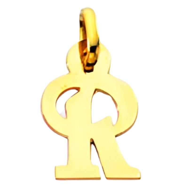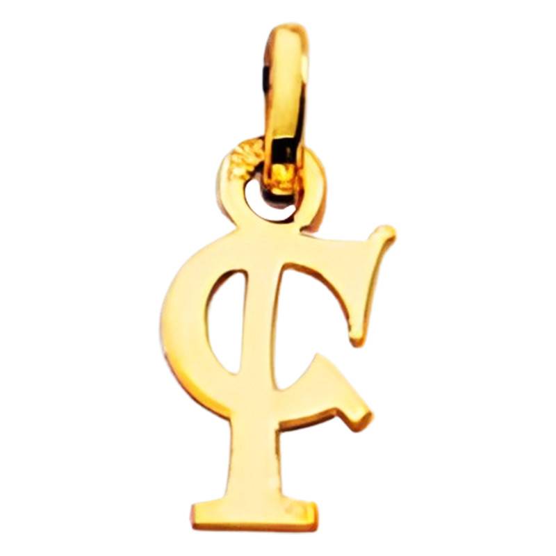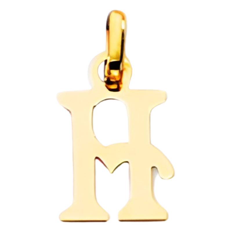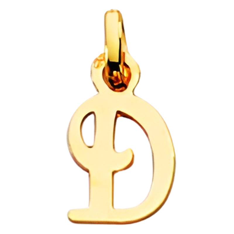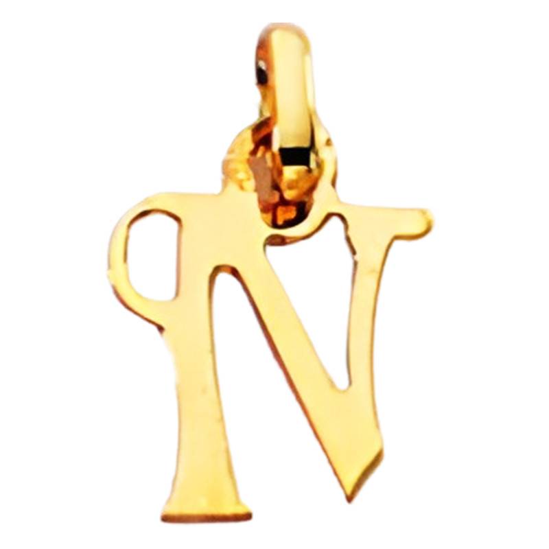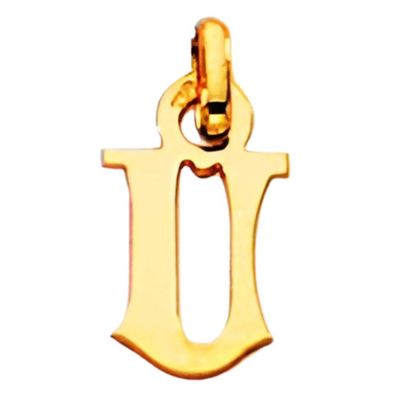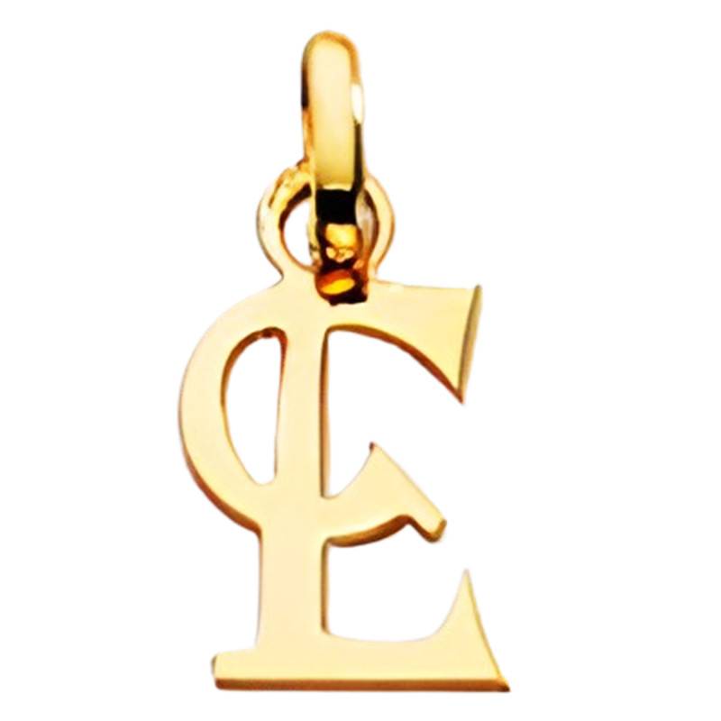 Ici, nous vous proposons ces pendentifs lettres stylisées en or jaune de 375/1000 (9K). D'une dimension de 13 mm de hauteur sur 10 mm de largeur, ceux-ci viendront embellir le port de tête ainsi que vos tenues avec élégance et discrétion. Nous comptons un poids d'or moyen de 0,50 gramme pour chaque pendentif.
