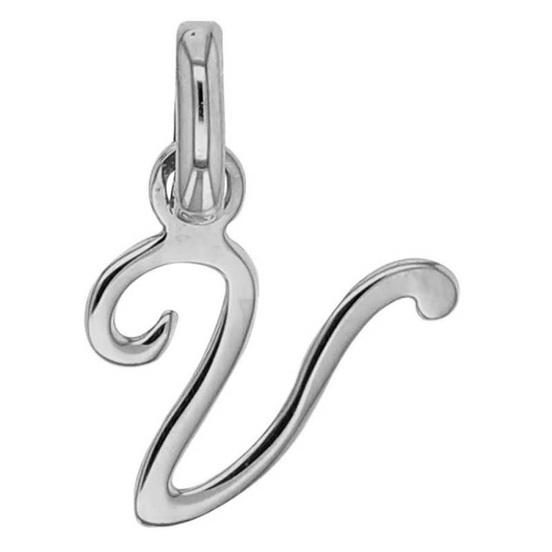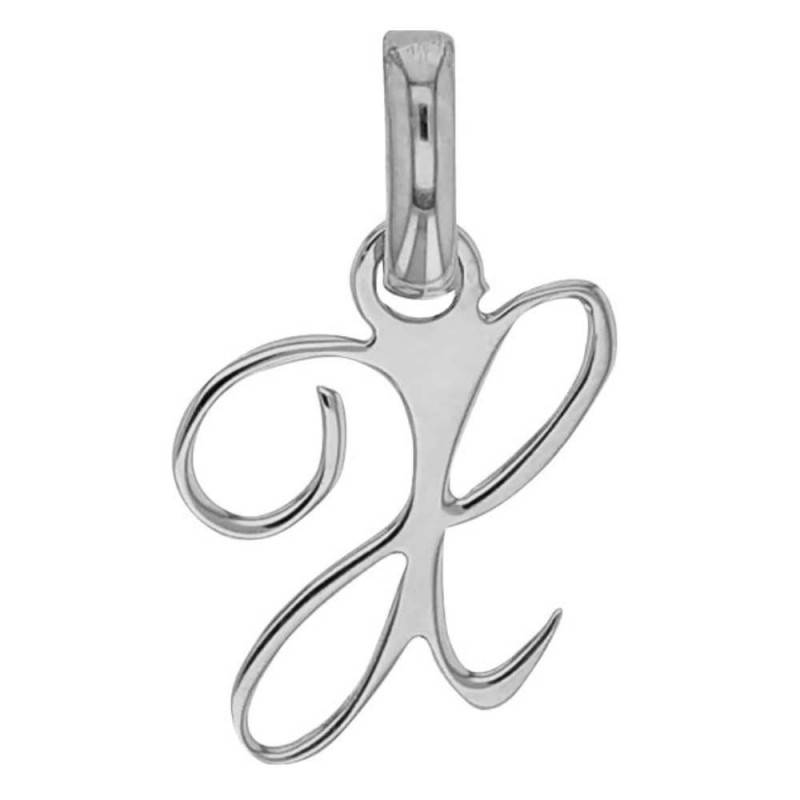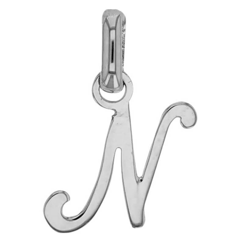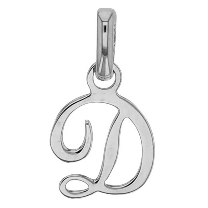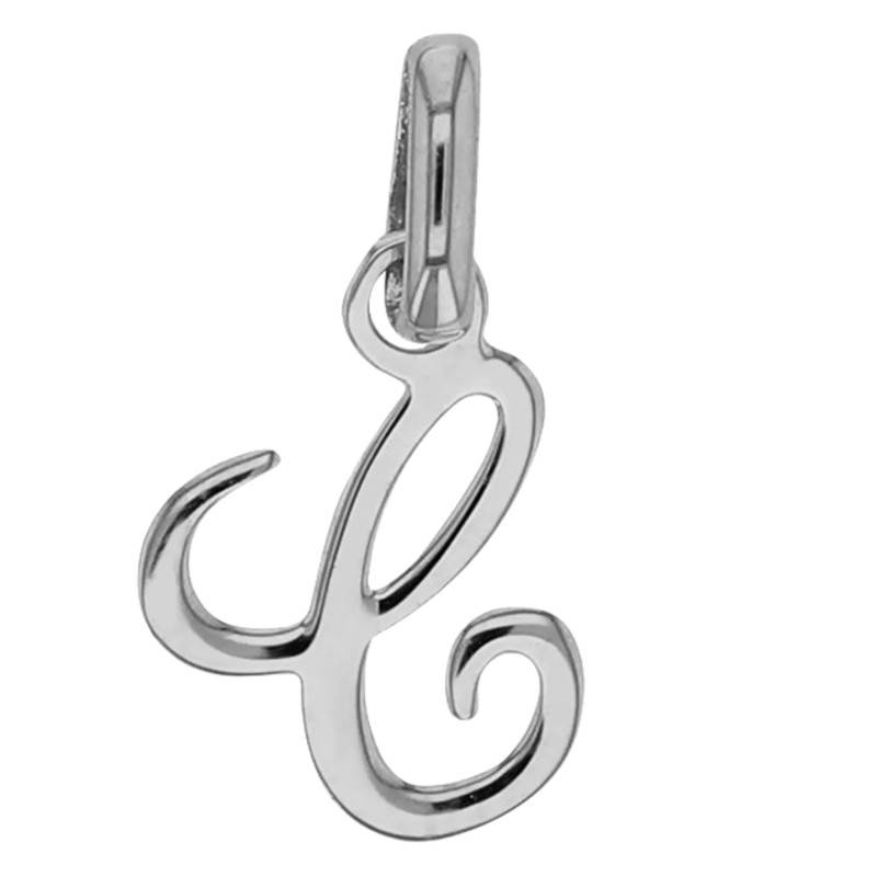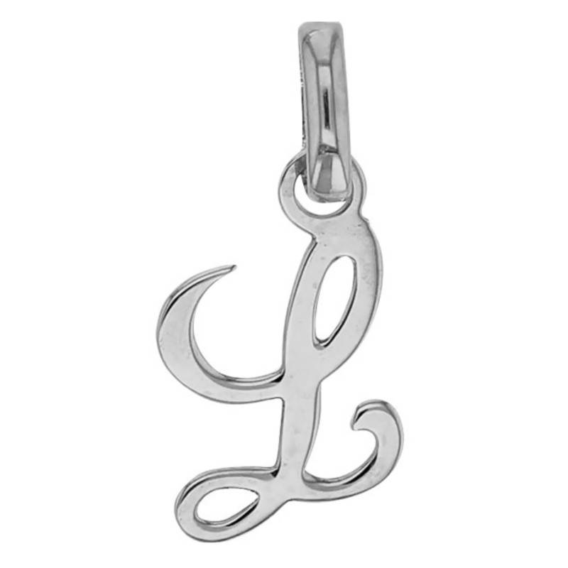 Ce sublime pendentif se compose d'initiales en or blanc 750/1000 (18K). Leur typologie est de type anglaise. Le poids des lettres varie entre 0,15 et 0,25 g.