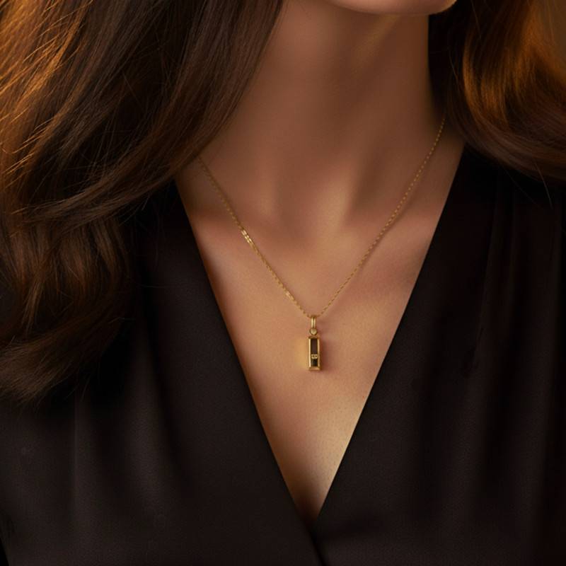 Ce Pendentif Lingot d'Or Jaune 750 est sculpté dans un or jaune 750/1000 (18K) resplendissant et mesurant 15 x 4,50 mm. Chaque détail de ce pendentif symbolise la richesse et l'élégance, un bijou à porter au quotidien. Léger avec un poids de 0,56 g, il s'accordera avec grâce autour de votre cou.