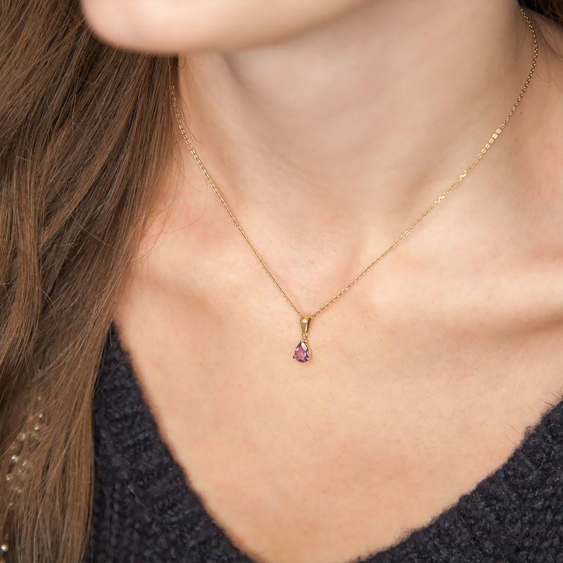 Ocarat a le plaisir de vous dévoiler une charmante création qui va vous plaire à coup sûr ! Ce pendentif de grande qualité a été réalisé en or jaune pour briller autour de votre cou. Il est serti en son centre par une ravissante améthyste de couleur violette. De forme poire, cette pierre a une largeur de 5 mm et une longueur de 5 mm. Enfin, son poids est de 0,66 carat.