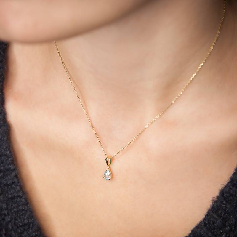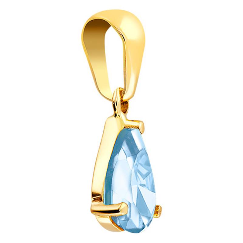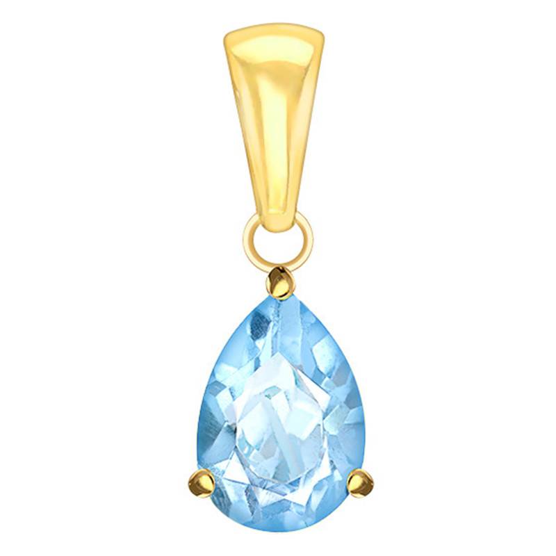 Découvrez sans plus attendre cette charmante création de la maison. Elle vous dévoile ce pendentif réalisé en or jaune. Il est orné en son centre par une sublime pierre de topaze bleutée qui apporte une touche de couleur. Cette douce topaze est de forme dite poire et a un poids de 0,66 carat. Elle dispose d'une longueur de 7 mm et d'une largeur de 5 mm. Enfin, pour plus de sécurité sachez que la pierre a été serti à griffes pour vous garantir un bon maintient.