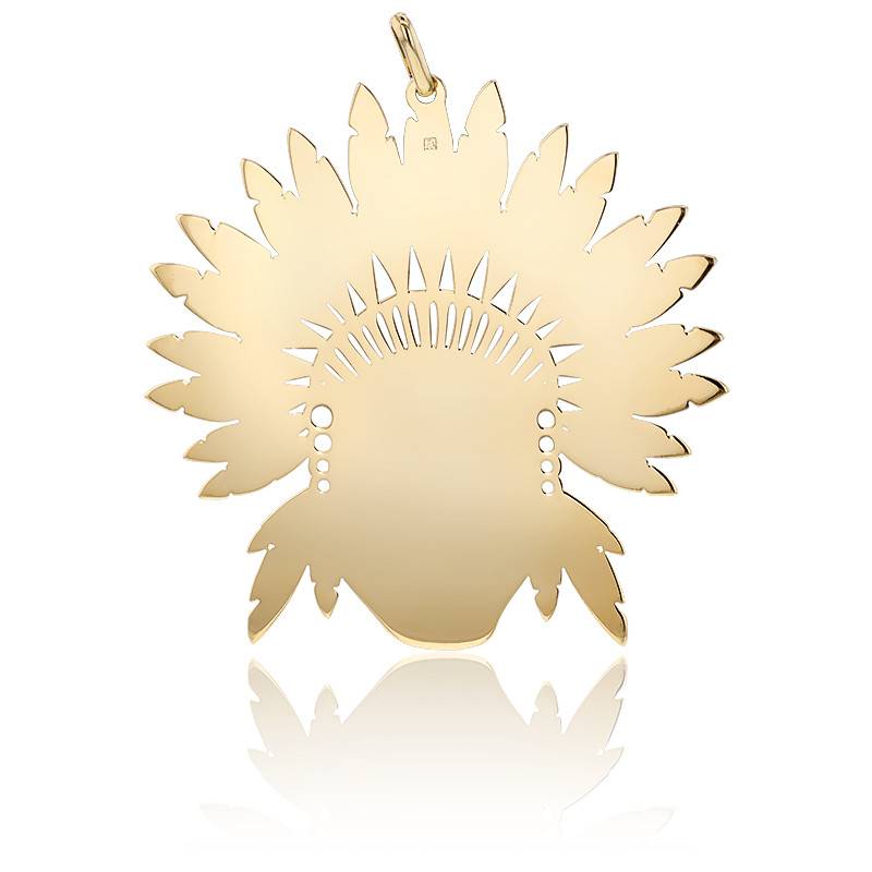Ce pendentif en métal doré est l'accessoire indispensable pour un style rock chic. En laiton plaqué Or 3 microns (garanti un maintien dans le temps), ce pendentif avec une tête de chef indien dorée viendra habiller gracieusement votre tenue.