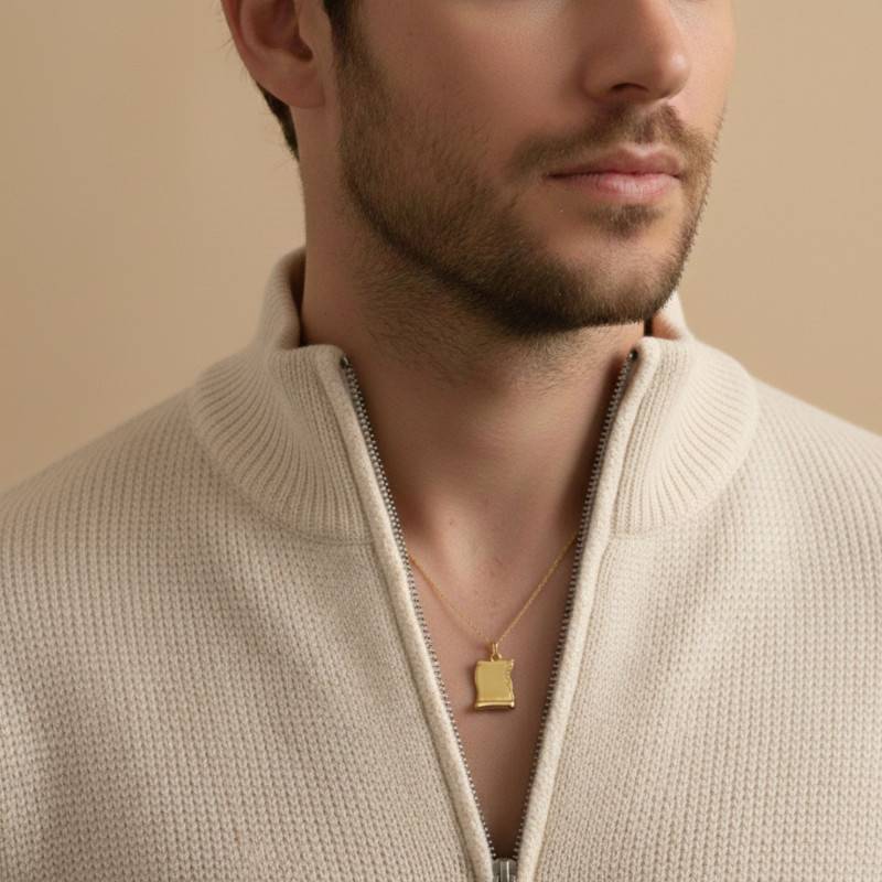 Découvrez le charme intemporel du Pendentif Parchemin à graver en plaqué or. Ce bijou, réalisé en laiton soigneusement sélectionné pour sa robustesse et sa beauté, est recouvert d'un plaqué or lumineux, offrant une finition polie et brillante. Le pendentif mesure 12 mm de largeur, 19 mm de hauteur, avec une bélière de 7 mm, et affiche un poids délicat de 1,80 g. Personnalisez-le grâce à la gravure, pour immortaliser vos émotions les plus précieuses.
