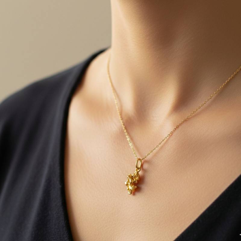 Découvrez le Pendentif Pépite Or Jaune 375 ou 750, un véritable trésor reflétant la pureté des étoiles. Confectionné en Or Jaune éblouissant, il allie la solidité de l'Or 375/1000 (9K) et la noblesse de l'Or 750/1000 (18K). Ses dimensions délicates de 13 x 10 mm révèlent une silhouette gracieuse, tandis que sa finition polie et brillante capte la lumière avec éclat. Ce bijou de 1,90 g promet une élégance intemporelle et une sophistication qui transcendent le temps.