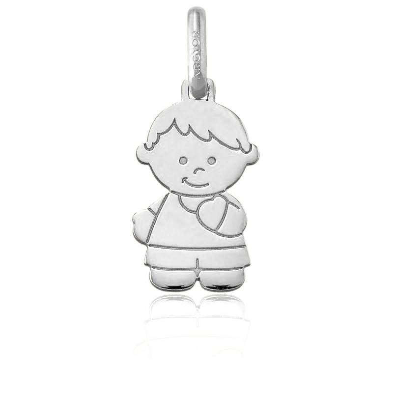 Ce ravissant pendentif est en or blanc 750/1000 (18K) et représente un petit garçon. Ses courbes arrondies reflètent la douceur et la pureté de l'enfance. La bélière de ce pendentif mesure 7 mm de hauteur.