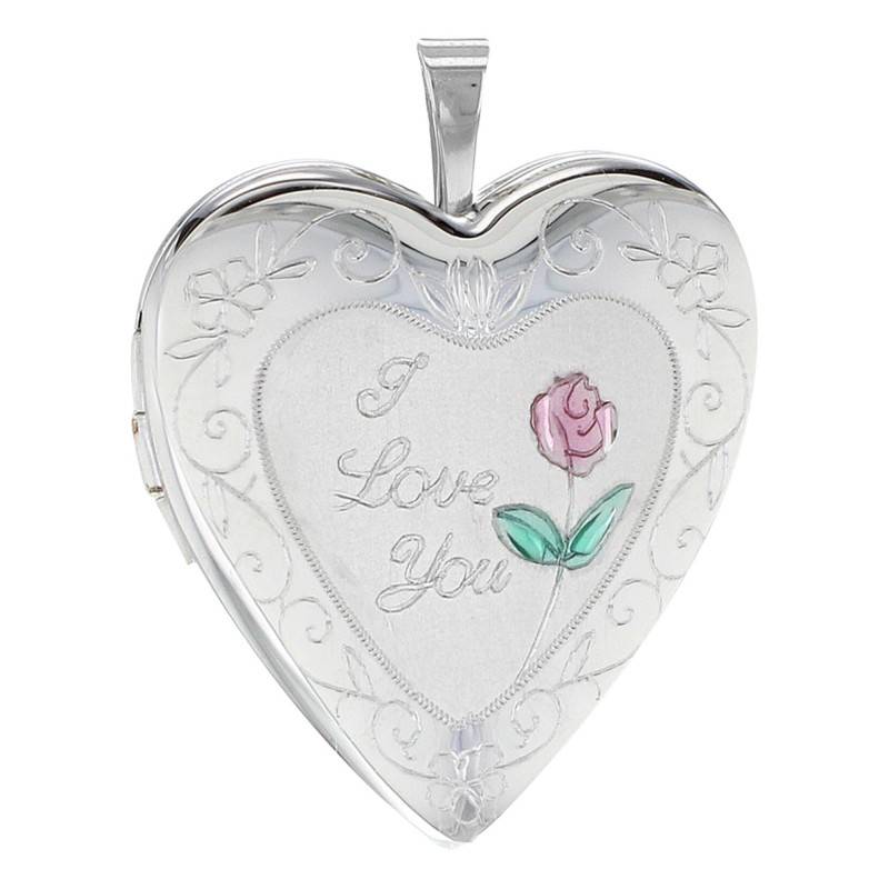 Ce pendentif porte photo saura habiller avec finesse vos tenues. ce magnifique cœur se pare d'une finition polie qui en fait un véritable bijou lumière. Ce bijou comprend un design fleuri sur sa bordure et un centre satiné sur lequel est gravée l'écriture "I Love You" accompagnée d'une rose. Ce pendentif en argent 925, vous permettra de conserver une photo d'une personne qui vous est chère. Il a pour dimensions 20 mm de largeur et 25 mm de hauteur, bélière comprise.