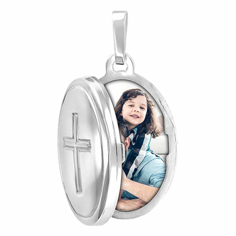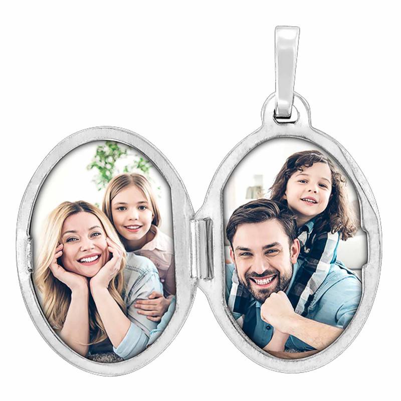 De dimensions 11 x 15 mm et d'une épaisseur de 4,50 mm, ce bijou d'un poids de 2,10 g est agréable à porter et peut contenir deux photos de petites dimensions. La hauteur du pendentif avec son accroche est de 17 mm, cette hauteur atteint 20 mm en prenant en compte la bélière dans laquelle passera la chaîne. Le pendentif peut se porter sur une chaîne d'une épaisseur maximum de 1,50 mm.
