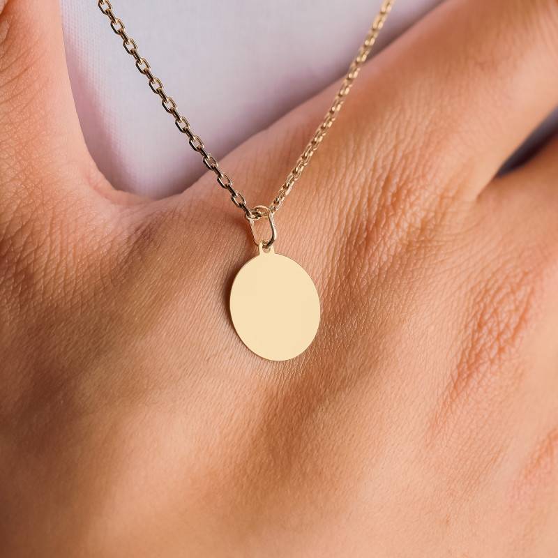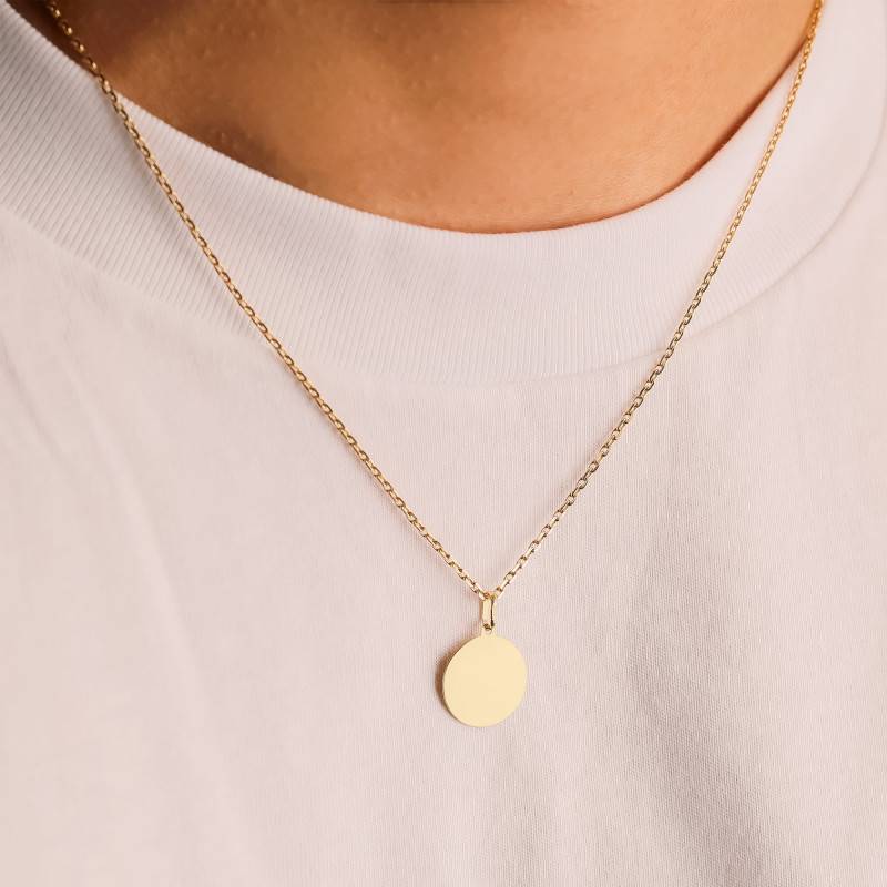 Ce charmant pendentif de forme ronde présente un design simpliste. De couleur dorée, il est réalisé en or jaune 750/1000 (18K), ce qui lui confère une meilleure durabilité. Ce bijou se pare d'une finition polie et détient un diamètre de 14 ou 16 mm. Grâce à la bélière dont il est muni, vous pourrez le porter sur une chaîne de votre choix pour en faire un collier. Vous pourrez personnaliser ce pendentif en y gravant une date ou un prénom significatif.