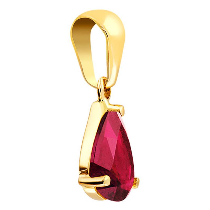 Haut en couleur, cet élégant pendentif se compose d'or jaune 375/1000 (9K) et d'un prestigieux rubis au rouge intense ! Cette ravissante pierre serti trois griffes de 0,66 ct possède une forme poire et des dimensions de 5 x 7 mm. Orné de cette magnifique pierre, ce joli bijou rehaussera n'importe lesquelles de vos tenues et sublimera votre décolleté ! Le pendentif possède une hauteur de 15 mm et un poids d'or moyen de 0,29 gramme.