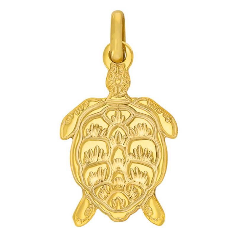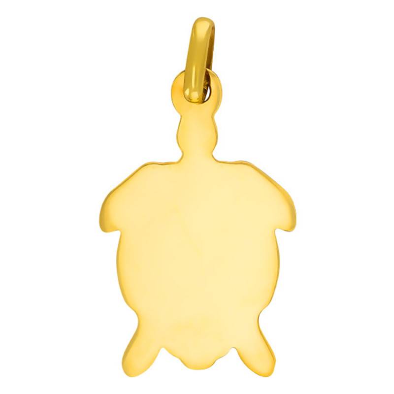Réalisé par l'artiste Marie-Claire Biard, ce pendentif en forme de tortue rappel un univers d'une île d'outre-mer, lointaine et paradisiaque. Finement gravée, cette tortue apparaîtra à votre cou avec lumière et éclat, représentant la sagesse avec féminité. Celle-ci vous est proposée en 375/1000 (9K) ou 750/1000 (18K) avec un poids d'or moyen variant de 0,90 grammes à 1,25 grammes.