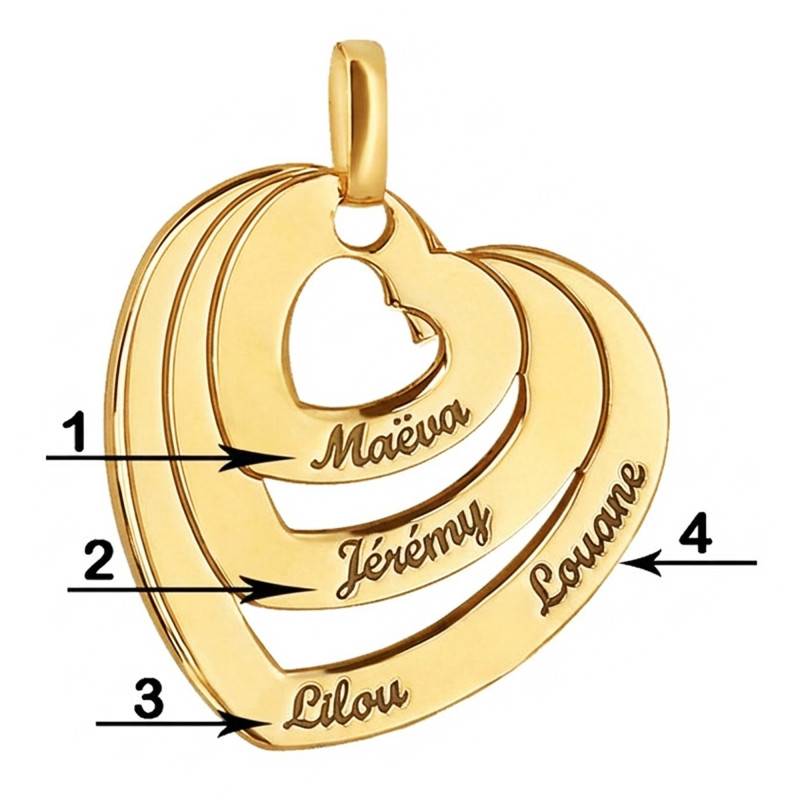 Découvrez le Pendentif Trois Coeurs Unis Gravable en Plaqué Or Jaune, un hommage fascinant aux liens inaltérables. Ce bijou pour femme, paré d'un éclat doré resplendissant, est confectionné en or jaune de qualité plaqué or (3 microns). Sa finition polie / brillante sublime son rayonnement naturel. D'une largeur de 25,00 mm et d'une hauteur de 27,00 mm, il s'enroule délicatement autour de vos émotions, avec un poids total de 3,00 g. Gravure possible, pour que chaque détail reflète votre essence singulière.