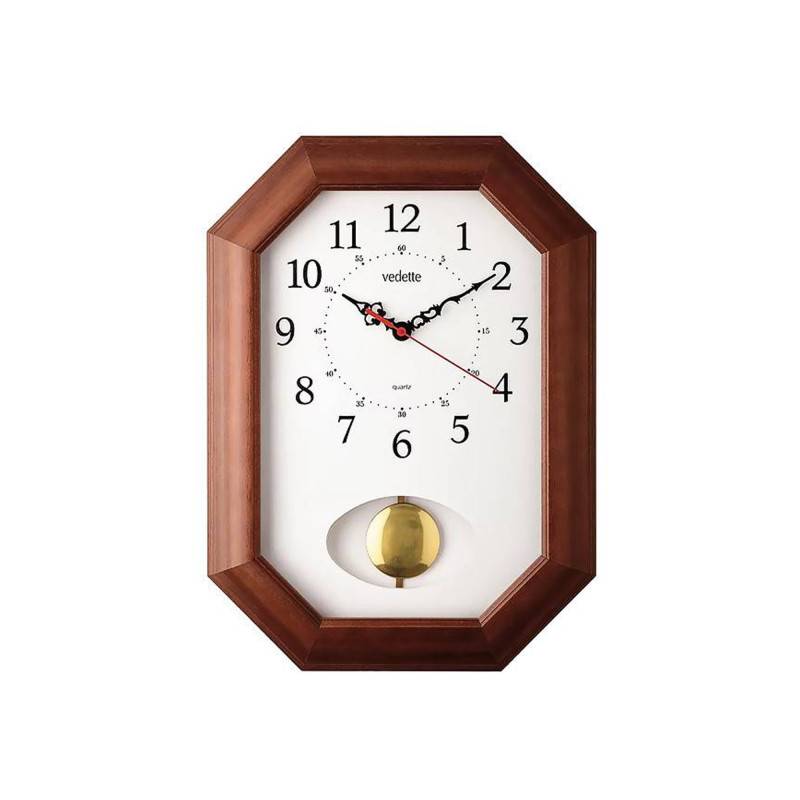 La pendule murale à carillon VP40080 proposée par Vedette est réalisée en bois. Avec ses dimensions de 48.6 cm de hauteur, 24.4 cm de largeur et 9.7 cm d'épaisseur, cette pendule habillera votre mur à la façon d'un tableau. Un grand verre minéral protège intégralement ce modèle. Le bois marron foncé et met en valeur le cadran blanc qui dévoile des détails noirs. En effet, les index des heures en chiffres arabes positionnés en cercle autour du chemin de fer des minutes en pointillés gradué de cinq en cinq. Les heures et les minutes vous seront alors détaillés par deux belles aiguilles noires tandis que les secondes seront précisées par la trotteuse rouge.