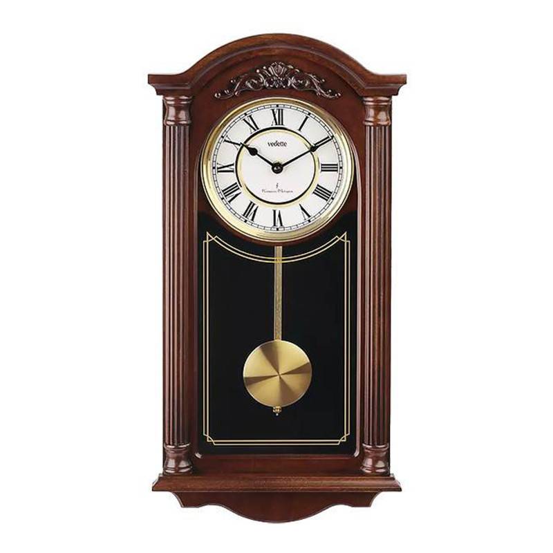 La pendule murale à carillon en bois VP60004 proposée par Vedette se démarque par son originalité. Avec ses dimensions de 48.6 cm de hauteur, 24.4 cm de largeur et 9.7 cm d'épaisseur, cette pendule ornera votre mur tel un tableau. Elle est fabriquée en bois et son pendule arbore une précieuse couleur dorée. Un grand verre minéral protège le modèle sur presque toute sa hauteur. Le bois marron foncé et met en valeur le cadran blanc à la finition double cercle délimités en doré qui affiche en chiffres romains noir les heures et les minutes pointés par des aiguilles assorties.