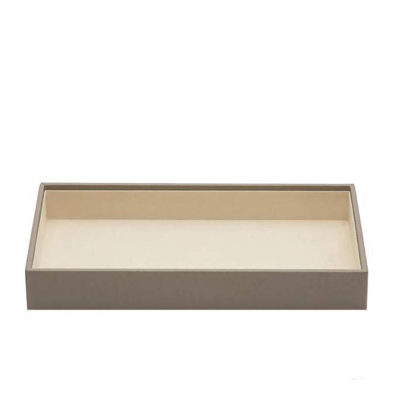 L'extérieure de ce plateau est en cuir à tannage végétal gris. Concernant l'extérieur, il se compose d'une doublure beige qui a bénéficié d'un traitement LusterLoc permettant de protéger vos bijoux contre le ternissement lié au temps pendant 35 ans environ.