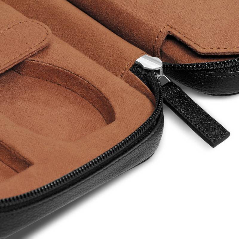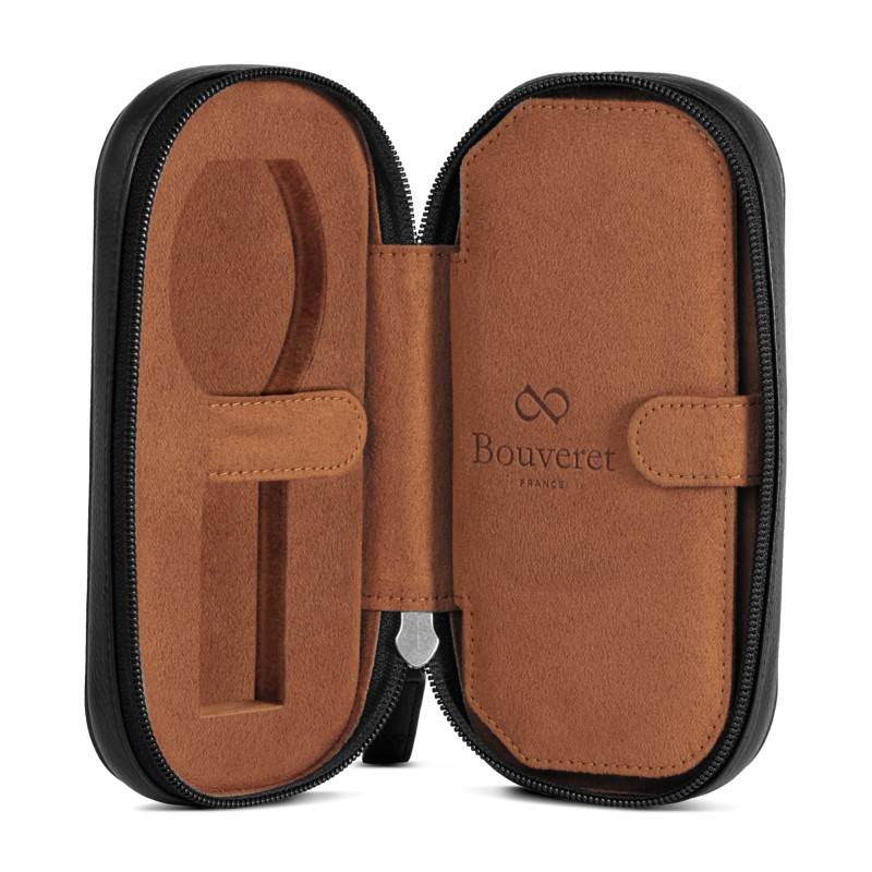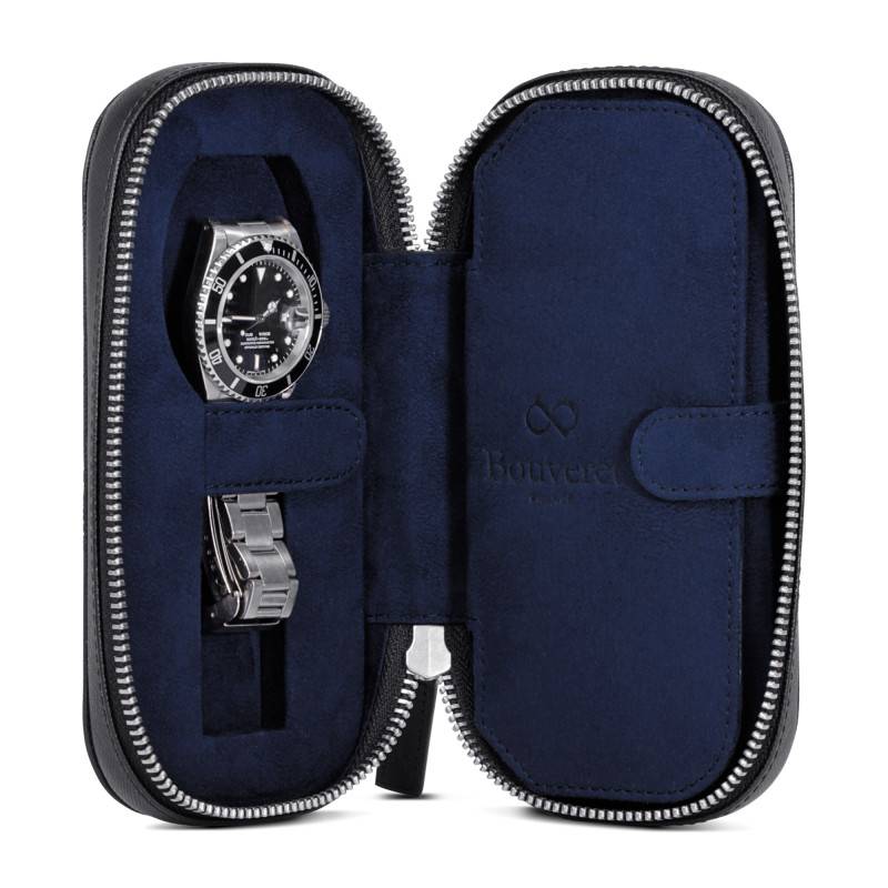 La maison Bouveret est une marque emblématique d'origine française qui conçoit des accessoires de montres avec un savoir-faire d'exception par ses artisans experts, garantissant la haute qualité de chaque création. Aujourd'hui, la marque vous propose cette belle création qui est une pochette 2 montres. Elle présente une forme rectangulaire compacte, vous permettant de la glisser facilement dans votre sac. S'ouvrant à l'aide d'un zip, elle arbore à l'intérieur une doublure et deux compartiments séparés, dont chacun peut accueillir une montre. Concernant les dimensions, cette pochette mesure 85 mm de largeur, 180 mm de hauteur et 45 mm de profondeur. Son poids est de 170 grammes.