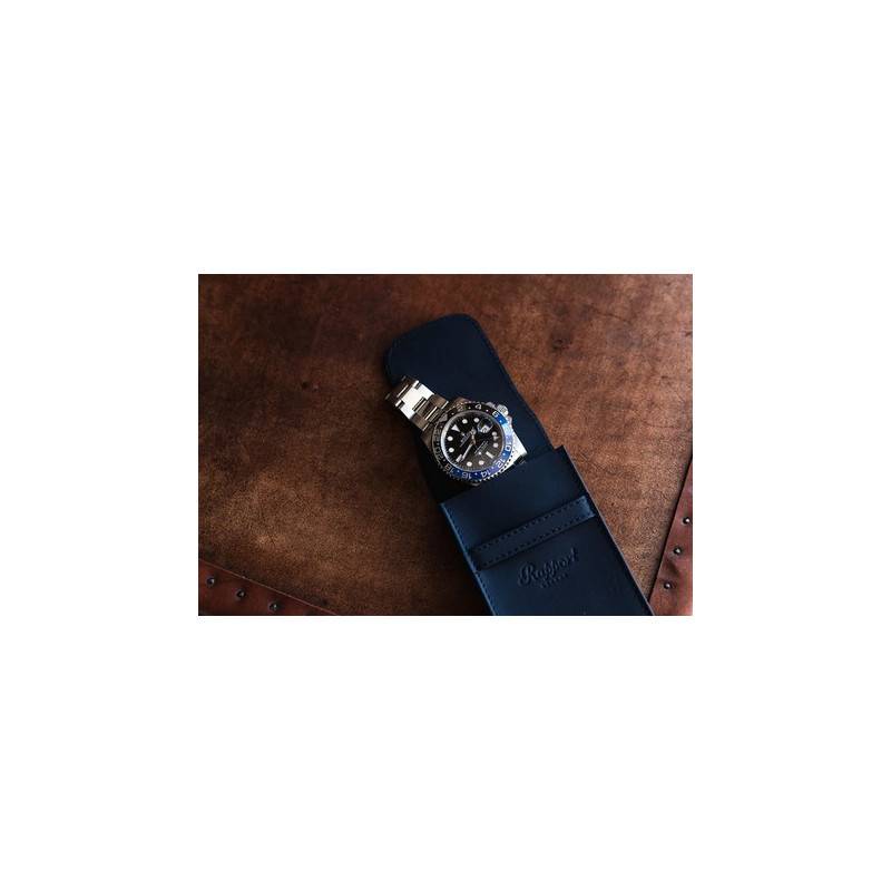 La Maison familiale Rapport London confectionne à la main des accessoires horlogers élégants et raffinés. Découvrez aujourd'hui la pochette pour montre Navy D288. Fabriquée en cuir souple de couleur bleu marine, la pochette est estampillée du nom de la marque. Discrète et pratique, elle est l'endroit idéal pour glisser votre montre et la garder en sécurité dans votre sac pendant vos déplacements ou dans votre valise durant vos voyages. Cette pochette possède des dimensions de 6,5 x 14 x 1 cm, parfaites pour accueillir votre montre préférée.