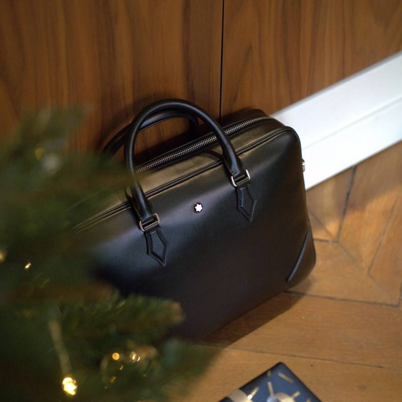 Dimensions et compartiments : 375 x 80 x 270 mm. Le compartiment principal possède des poches intérieures qui vous assure un accessoire chic et fonctionnel. Les tirettes et les poignées en cuir font écho à la forme de la plume des outils d'écriture Montblanc.