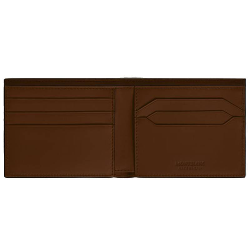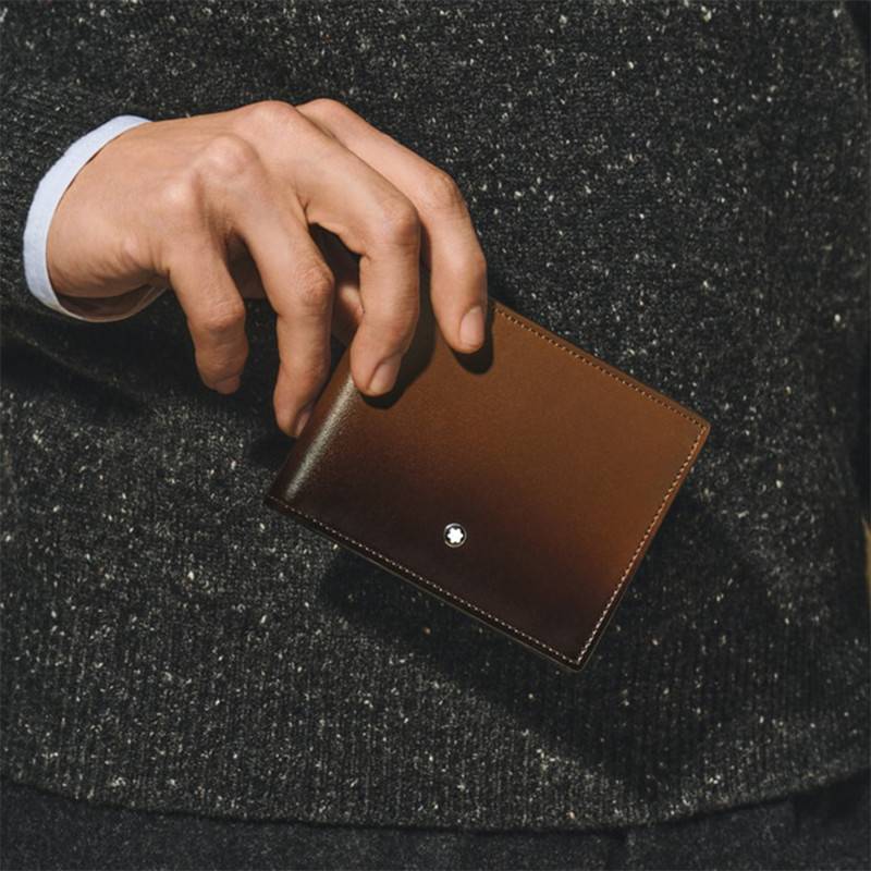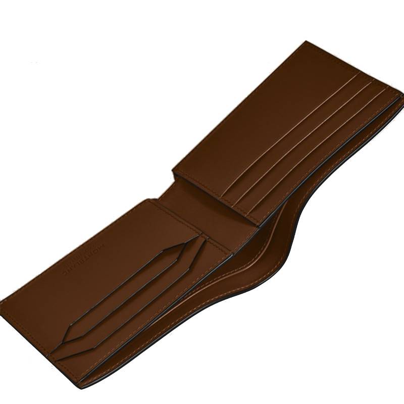 Son style est minimaliste mais luxueux, marqué par une texture lisse et agréable au toucher. Le portefeuille présente une fermeture par pliage sur soi-même qui garantit sa solidité et sa fiabilité au quotidien. Il est subtilement orné d'un logo Montblanc à l'avant, un détail reconnaissable qui accentue son aspect haut de gamme.