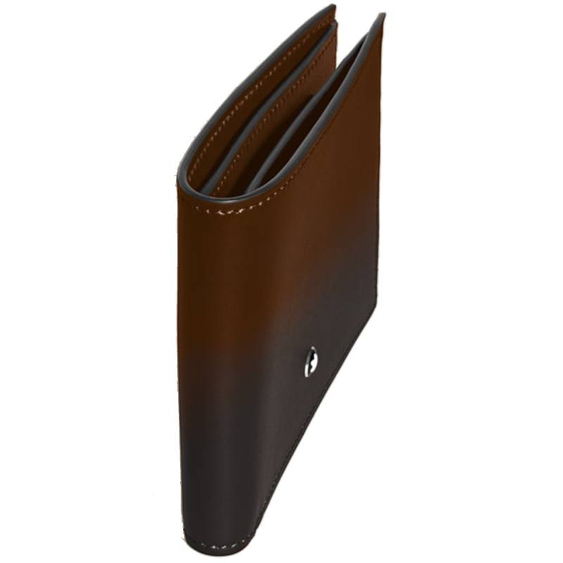 Le portefeuille Meisterstück Sfumato incarne la sophistication et l'élégance à travers son design en cuir marron délicieusement travaillé. Constitué de cuir véritable de bovin, il présente une finition semi-aniline, ajoutant une subtile teinte qui laisse apparaître les nuances naturelles du cuir tout en offrant une parfaite résistance. Mesurant 110 mm de long, 85 mm de large et doté d'une épaisseur de 10 mm, il est conçu pour une manipulation facile et un glissement délicat dans toutes les poches sans créer de volume superflu.